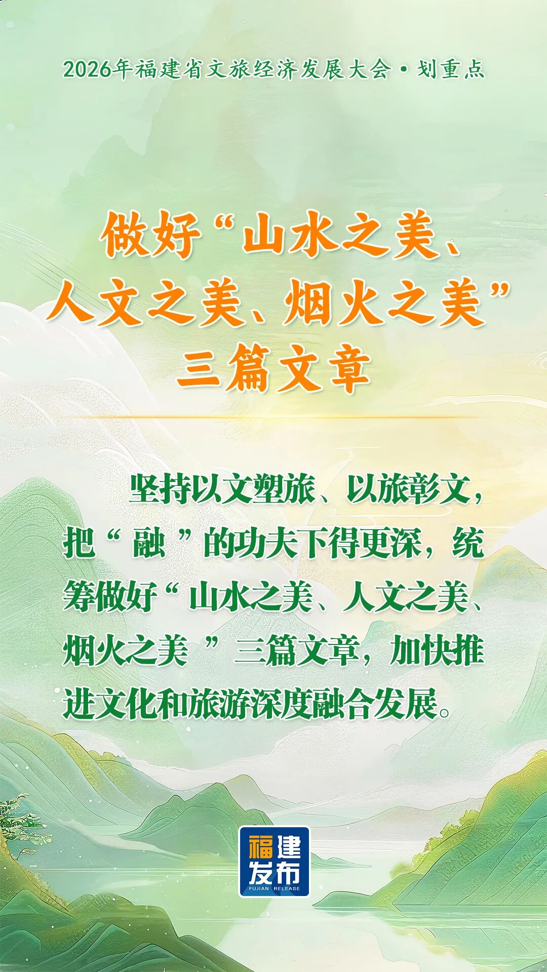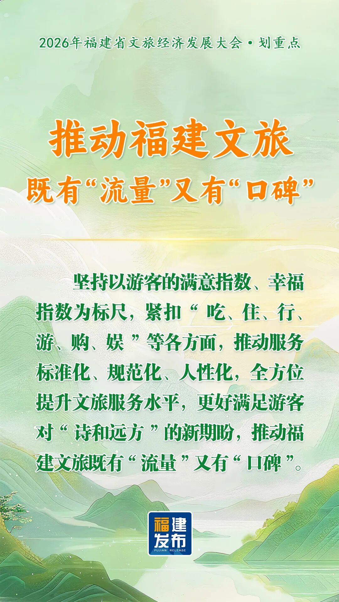 4月18日,2026年福建省文旅经济发展大会在漳州召开。省委书记、省人大常委会主任周祖翼出席并讲话,强调要全面落实习近平总书记关于文化和旅游工作的重要论述和在福建考察时的重要讲话精神,聚焦打造世界知名旅游目的地发展目标、把文化旅游业培育成为支柱产业重要要求、推进文化和旅游深度融合发展实践路径,坚持守正创新、提质增效、融合发展,着力完善现代旅游业体系,在提升文化影响力、展示福建新形象上久久为功,为全省在中国式现代化建设中奋勇争先提供坚实的文旅支撑。省委副书记、省长赵龙主持大会。